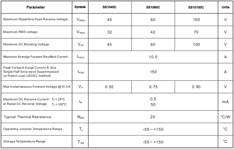 SS1045肖特基二極管,10A 45V,DO-214AB SMC封裝,SS1045參數(shù)規(guī)格書SS1045是貼片肖特基二極管,10A 45V,SS1045封裝是DO-214AB SMCSS1045 DO-2